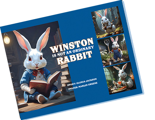 This book about Winston is no ordinary book. It was prompted by an AI computer image of a handsome rabbit dressed up in a navy officers uniform. The computer tools made it possible to create more interesting images of a rabbit in various, human-like situations. The story then evolved from that collection of computer-generated rabbit images. We described the young girl we had in mind to the computer and it gave us what we asked for—the perfect companion for Winston. We called her Wendy, which has a nice fluency coupled with Winston.